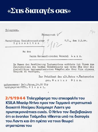 «Ο Σύλλογος Τσαμουριά έχει την ατζέντα του, όπως έχει την ατζέντα του και το αλβανικό κράτος και ζητούμε ν’ αρχίσουν οι συνομιλίες για το θέμα αυτό. Να ξεκαθαρίσει ο κ. Κοτζιάς αν η Αλβανία είναι μια χώρα φίλη ή μια χώρα εχθρική και γι’ αυτό ν’ αποσύρει το νόμο της εμπόλεμης κατάστασης. Εμείς είμαστε μέλος του ΝΑΤΟ και δεν παραδεχόμαστε ένας Υπουργός των Εξωτερικών της Ελλάδας να’ρθεί και με θρασύτητα να μιλάει κουροφέξαλα…», φώναζε έξω από το Υπουργείο Εξωτερικών ο πρόεδρος των Τσάμηδων.