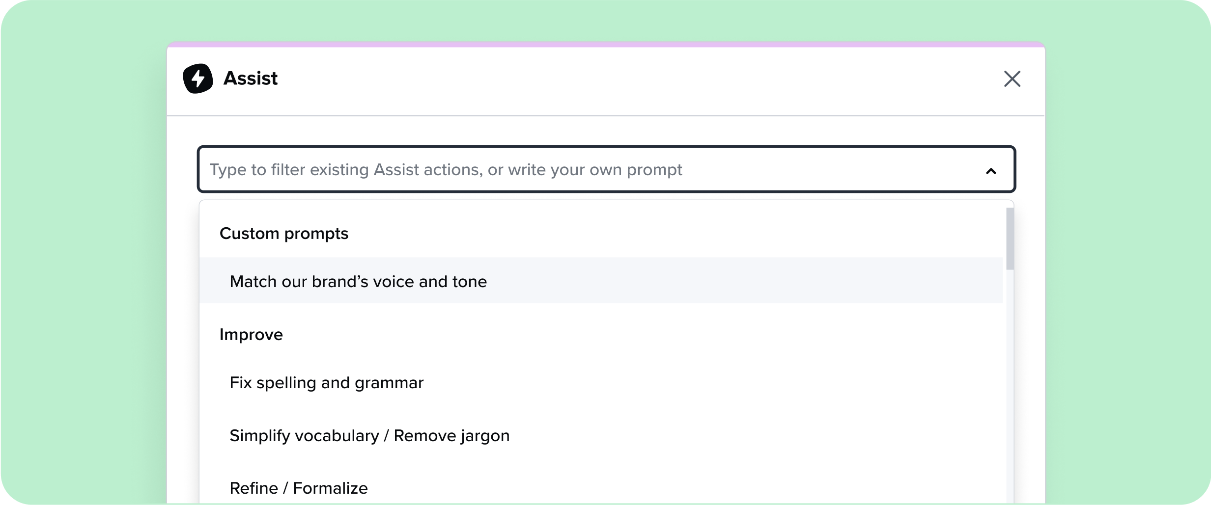 Not everyone’s a writer—but everyone has something to share. Content assist helps team members focus on their expertise, not formatting.