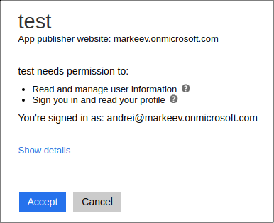 This script is editable, so you can try using your own Application ID (clientId) and reply URL (redirectUri) from the Azure Portal. If you temporarily configure redirect URL to point to "http://markeev.com/posts/skype4b" - then it will be possible to run the scripts right from this page using interactive editors. Please don't forget to remove this redirect URL when testing is done!