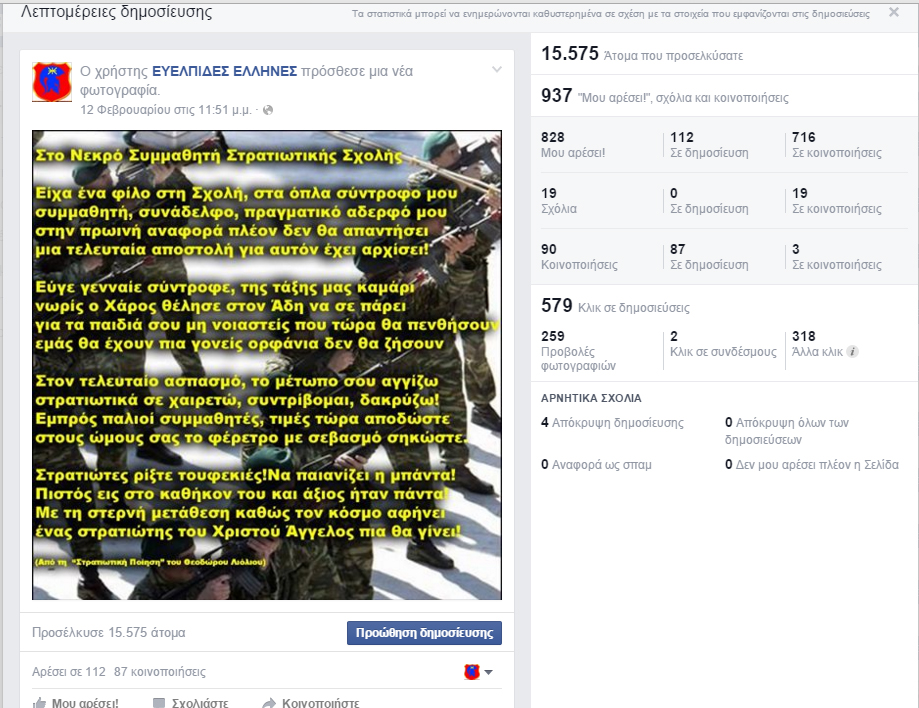 Η Στρατιωτική Ποίηση των Ευελπίδων Ελλήνων προσελκύει χιλιάδες αναγνώστες και εκατοντάδες likes στο facebook