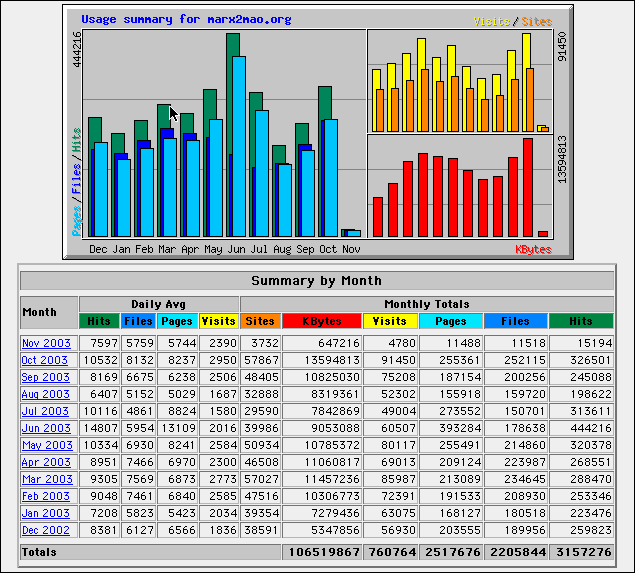 The following charts and tables (courtesy of my ISP) present a graphic representation and a statistical summary of certain variables proporting to offer some measure of the nature and the extent of the activity that has taken place at this site over the past eleven months. Thank you all for your support.
