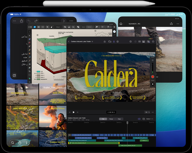 صوّر وعدّل وشارك على جهاز واحد فقط بفضل نظام كاميرات Pro‏ وماسح ضوئي بتكنولوجيا لايدار وميكروفونات بجودة الاستوديوهات الاحترافية وأربعة مكبرات صوت. التقط فيديوهات ProRes بوضوح 4K وسجّل حلقة بودكاست واختَر الميكروفون المناسب لكل تطبيق باستخدام منتقي الإدخال.