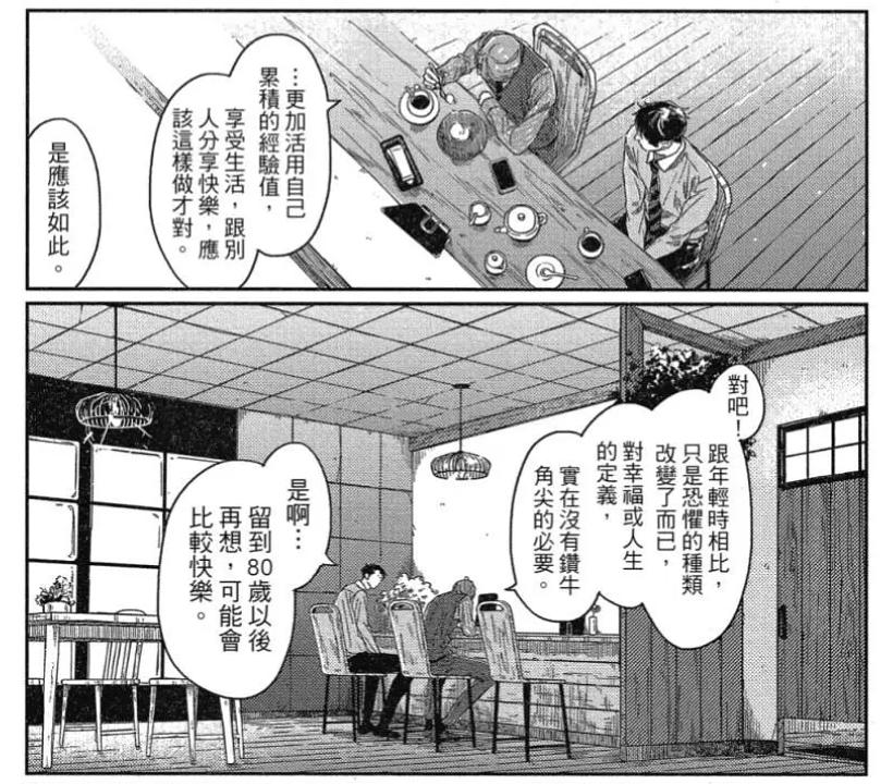 最后,感觉这不仅是恋爱漫画,至少前半段讲了关于中年困惑,而提到的问题和我所了解的人生四分之一危机有所重叠。困惑不是年龄问题,或许就是从某天感觉自己不再是青年开始。所以能有一个再去继续探索更多初体验的机会,大概真的很宝贵,能有这样的同伴,也很难得。