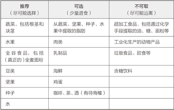 本书是比特曼写过的“最严肃的一本书”,“我希望本书能改变读者对食物及与食物相关的一切事物的看法”(前言),内容是许许多多的“问题”和“看法”。出版社列出的本书卖点中,包括“中国首批注册营养师xxx倾力推荐”,显然是把这本书当成了写营养的书,尽管全书仅有的一张图表是“食谱搭配建议”表(第十四章,如下表),但表中填列的是食物类别,如“蔬菜”“水果”“肉类”等,是一个粗线条的食物类别搭配,“是根据有据可查的营养学研究总结出来的”。请出中国首批注册营养师来“倾力推荐”本书,显得错用了力量。