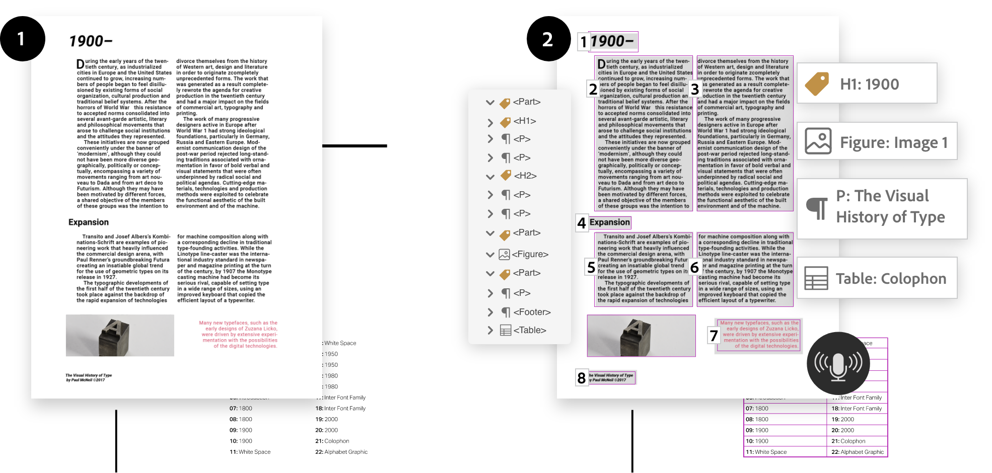 To read a document's text and accurately format it for assistive technologies like screen readers and other text-to-speech tools, a PDF must have document structure tags that define the reading order. Identifying headings, paragraphs, sections, tables, and other page elements is necessary to achieve accessible, readable PDFs.