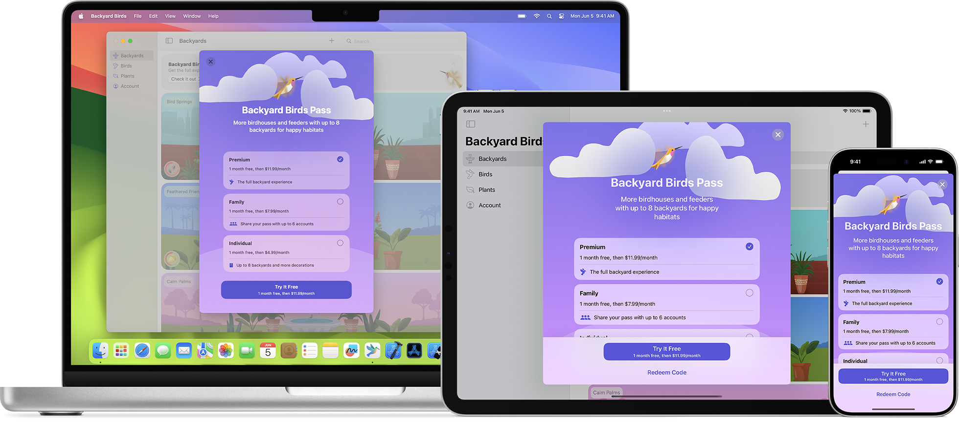 App Store 提供了一个强大的商务系统,帮助你在各个 Apple 平台上向世界各地的用户轻松提供内容和服务。这个系统每年促成数十亿笔交易,可处理端到端付款流程,让你无需分心,能够完全专注于开发用户喜爱的优质 App 和游戏。