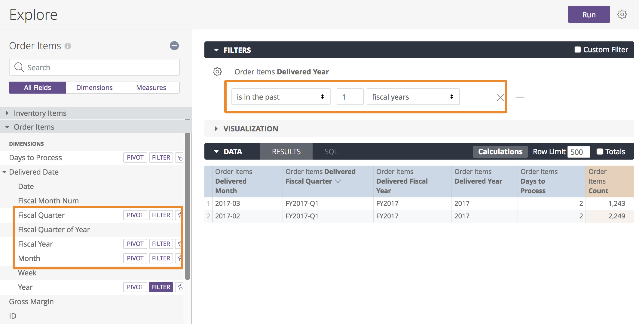 If you don't use the calendar year for your fiscal year, you can specify when your fiscal year begins for each model. Use fiscal_month_offset to declare the number of months your fiscal year is offset from the calendar year. For example, fiscal_month_offset: 1 will specify that the fiscal year starts in February.