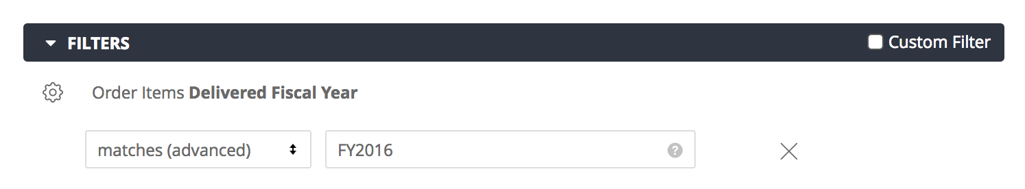 For advanced matches filter expressions, you can refer to fiscal years and quarters as absolute dates or relative dates.