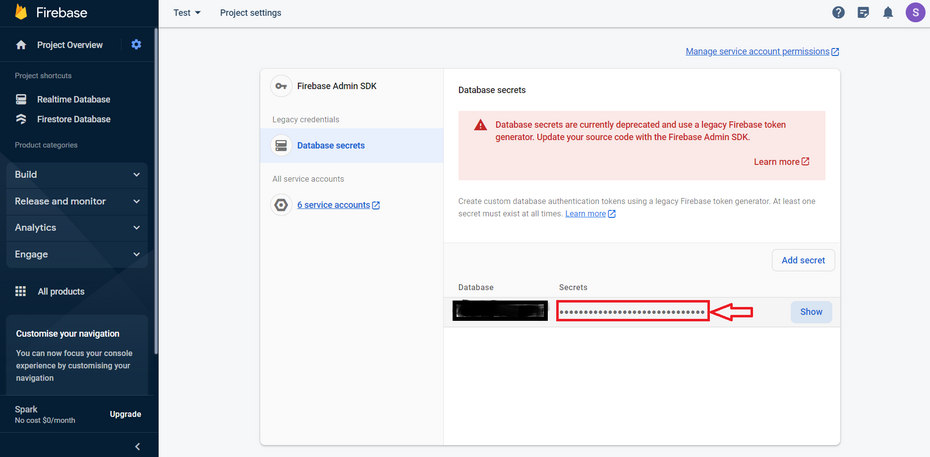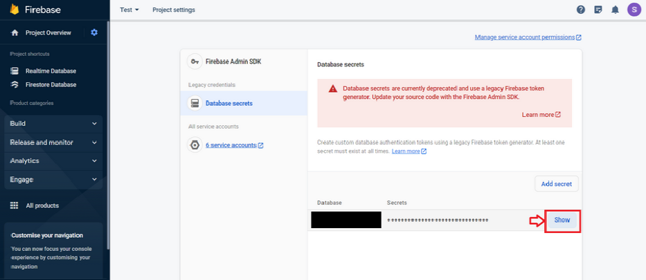 Step 6 : Here is your Firebase APP Secret Key.