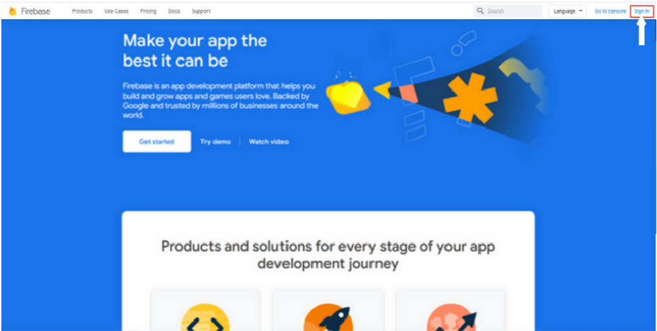 Step 2 : If you have a Firebase account, Sign in, else create an account