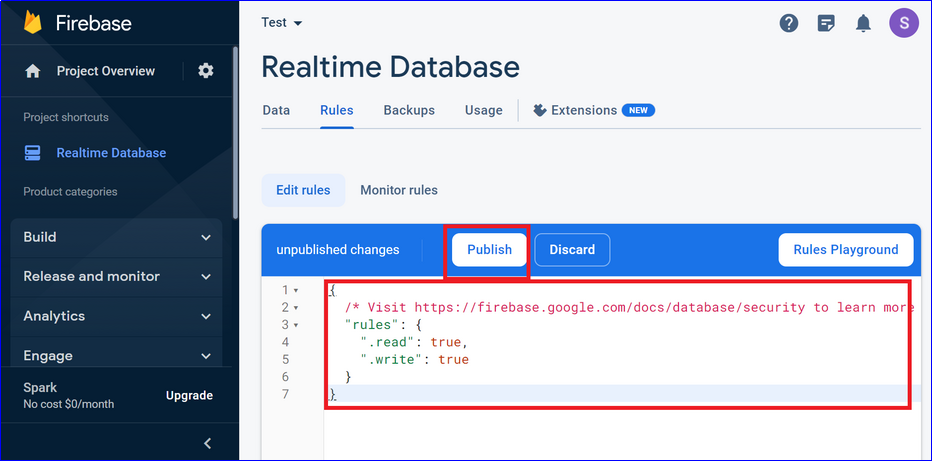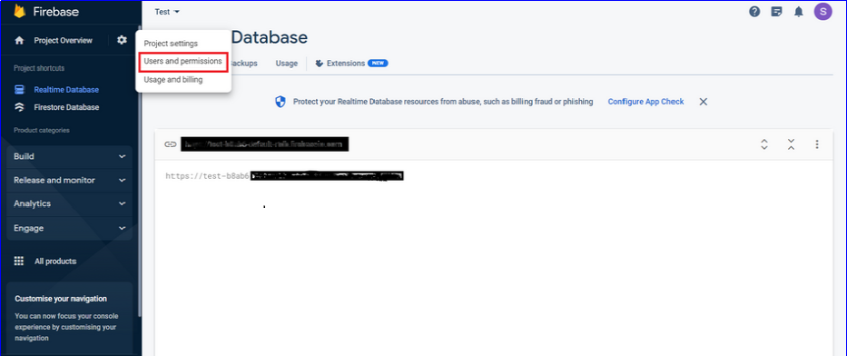 Step 1 : Click on Realtime Database from left menu.