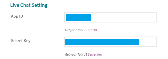 You just have register at Talk JS site to get your App ID and Secret Key.