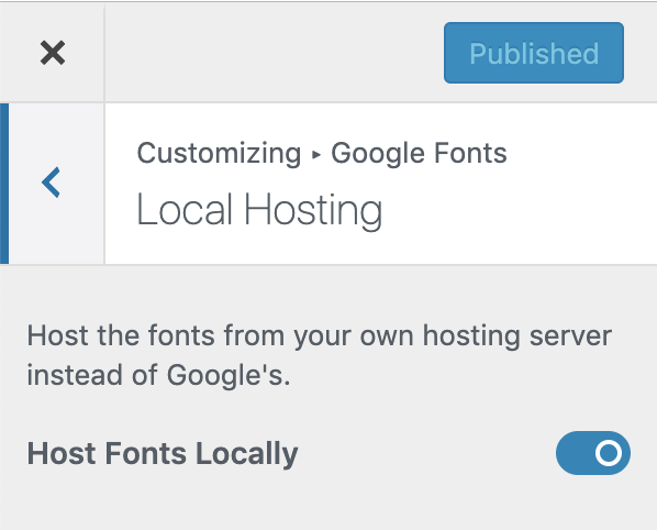 By hosting Google Fonts locally, you remove the need for the browser connect to Google’s servers. This removes one HTTP request and can also help with GDPR-compliance. Google Fonts Pro features a one-click toggle to enable Local Hosting: