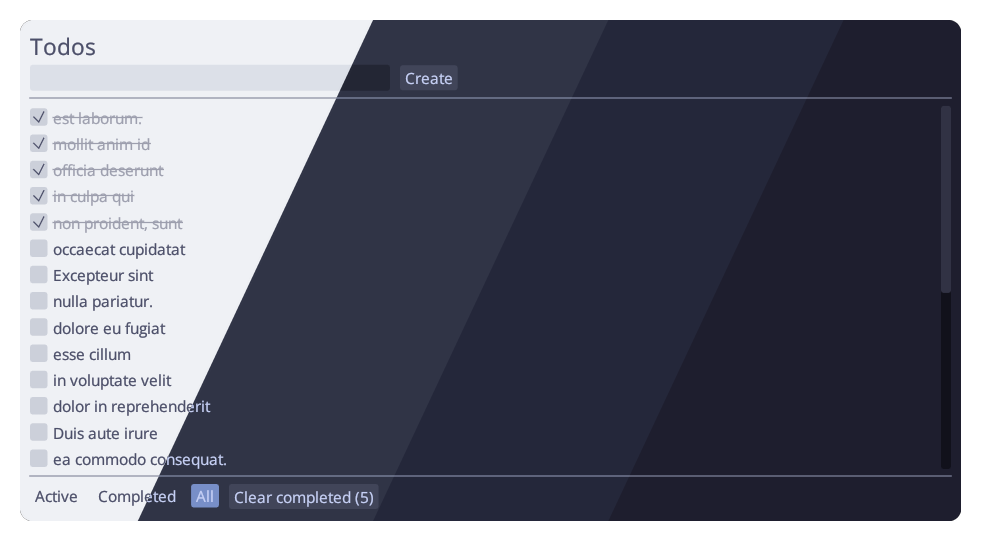 catppuccin_egui::set_theme(&ctx, catppuccin_egui::MOCHA);To run the example app, run cargo run -p todo.