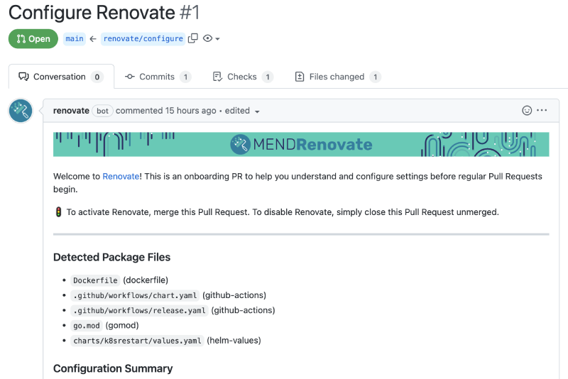 Install Mend Renovate risk-free and you'll first receive an onboarding Pull Request in each repository. It analyzes the repository files and describes what will happen next, so there's no surprises.