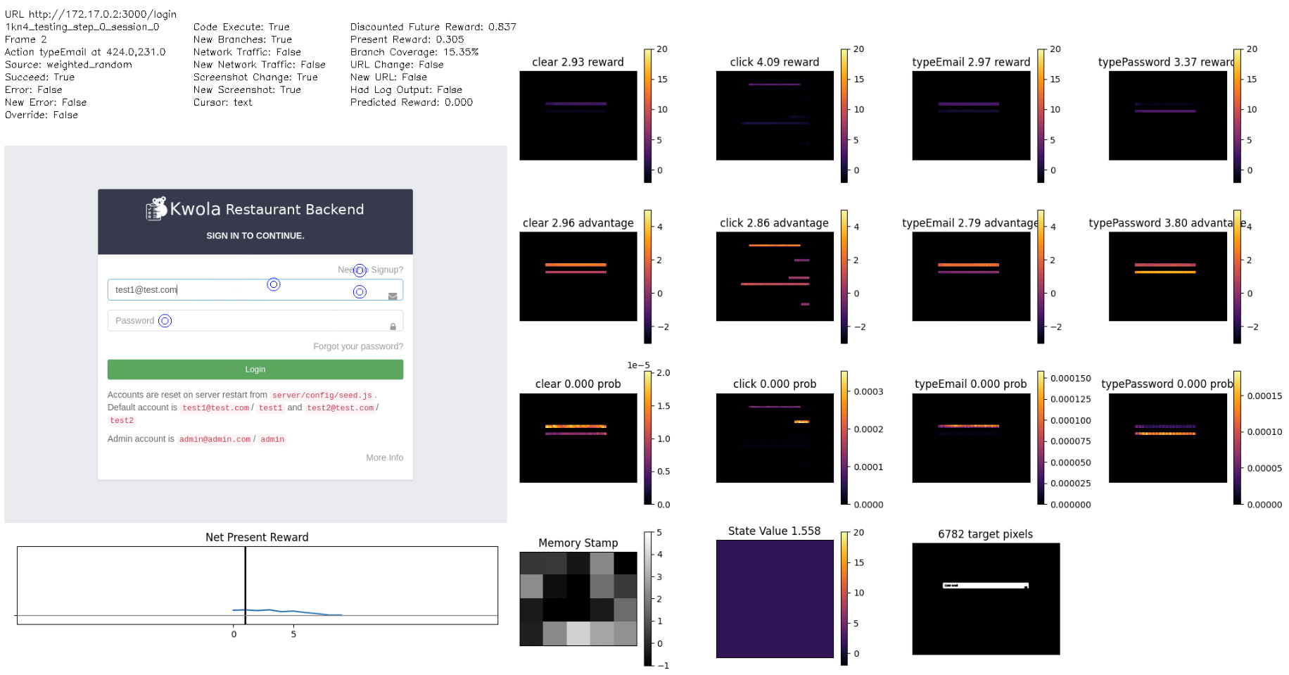[user@localhost]$ kwola http://172.17.0.2:3000/