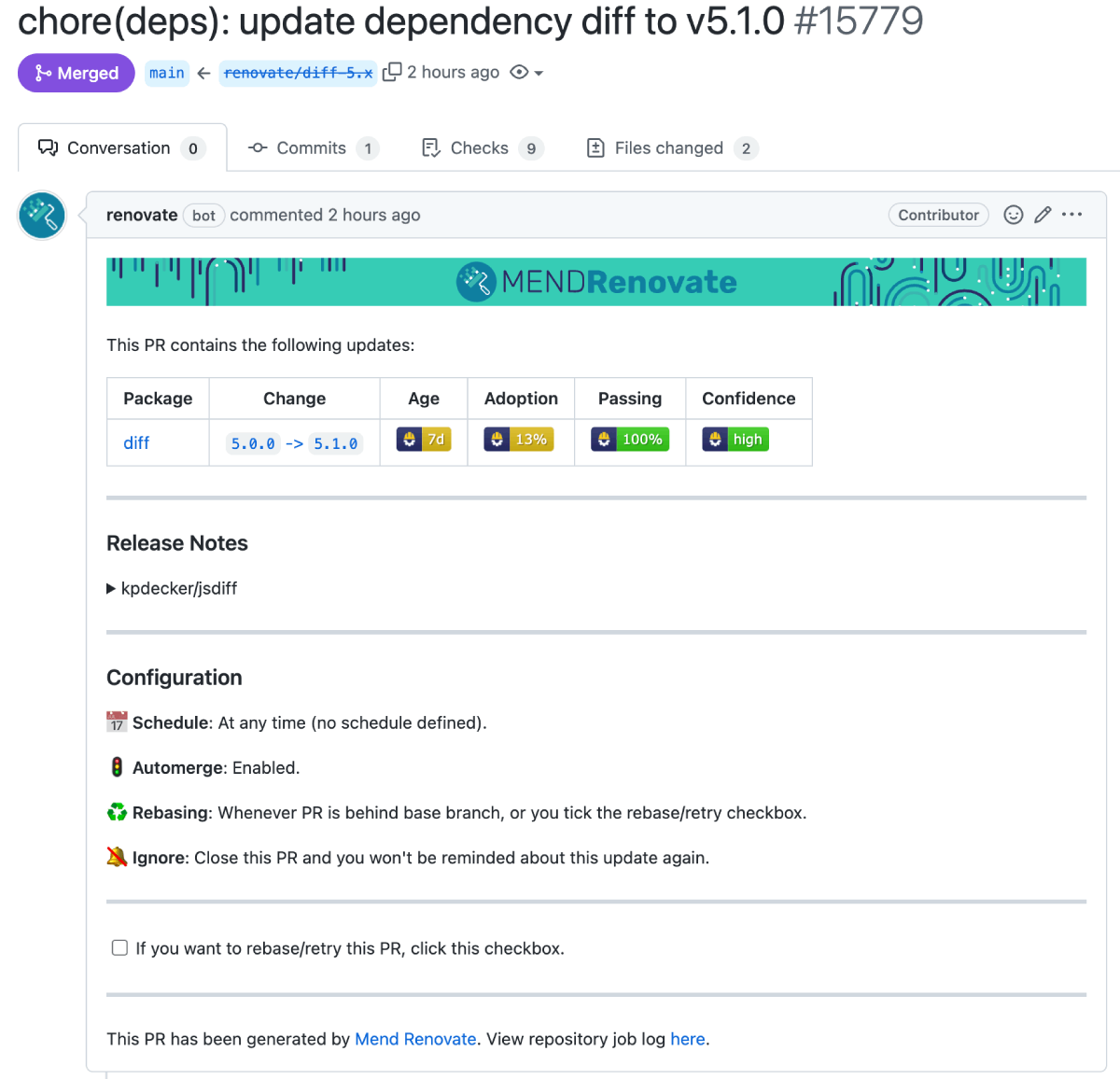Stop worrying about breaking your build. Crowdsourced merge confidence and package adoption data are used to identify whether an update can be safely merged or contains potential risk.