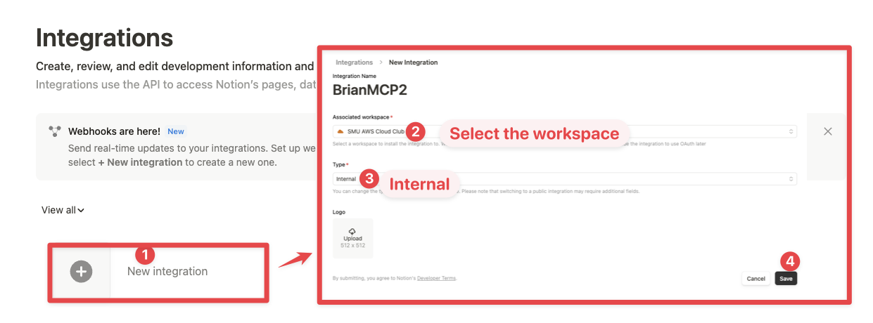 Go to https://www.notion.so/profile/integrations and create a new internal integration or select an existing one.
