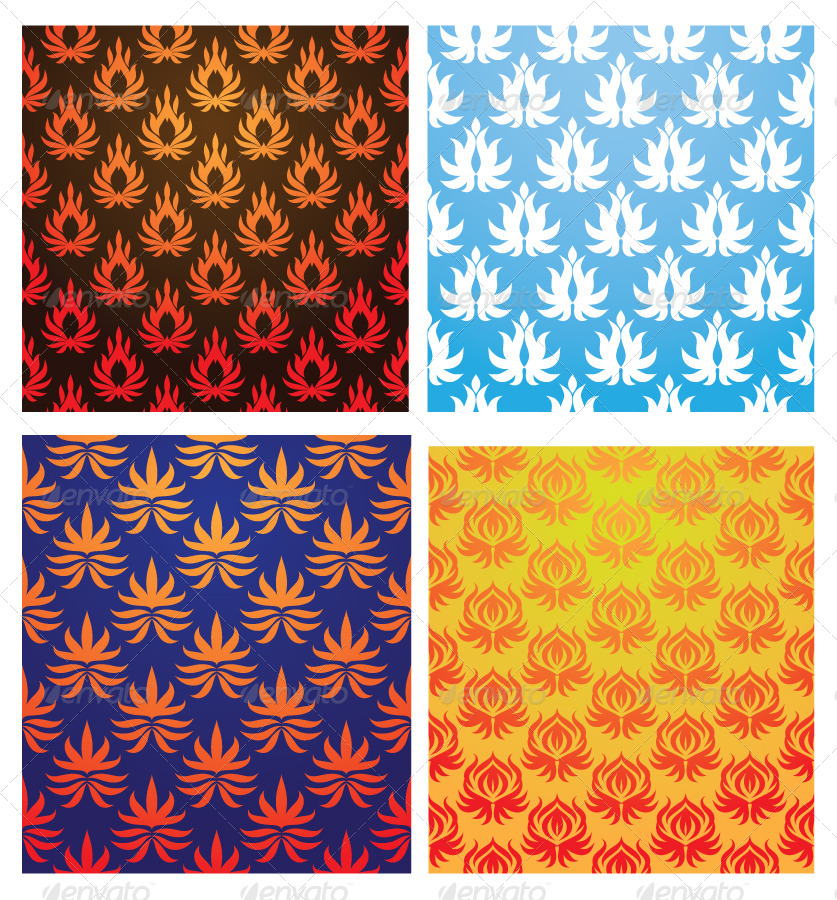 4 Fire Pattern vector set, Easy to use. ZIP file included : EPS (CMYK vector file = you can use any size you want without loss resolution), JPEG (RGB high resolution file 4000×4301 px), Ai 10 and PDF . No layers. Use Adobe Illustrator 8 or higher to edit EPS (vector file) or Adobe Photoshop to edit JPEG file. You can see detail in Screenshots menu.