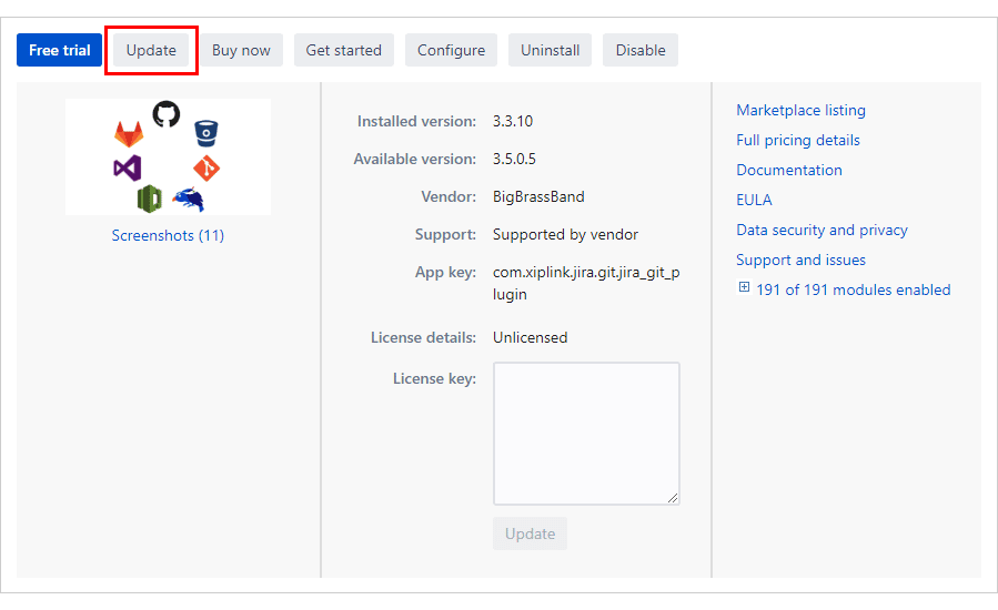 To manually update the Git Integration for Jira app, the user must have the Jira System Administratorsglobal permission.