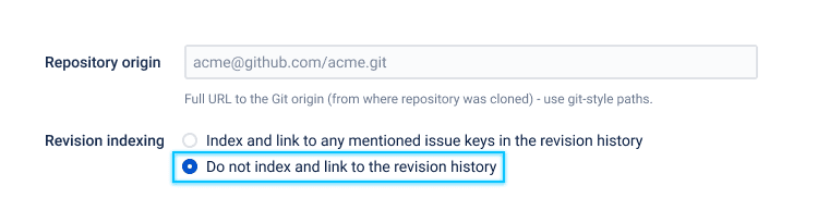 Disabling Revision Indexing for particular repositories. Select the “Do not index and link to the revision history” option on Update Repository settings page for repositories that you want to exclude from processing.