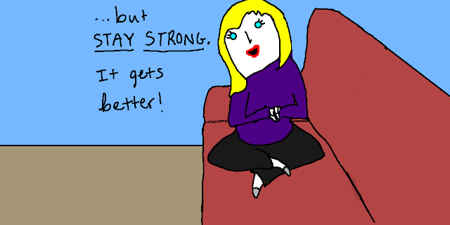 Brilliant. Absolutely brilliant. In all of my 15 years of depression including severe suicidal thoughts at times this is 10 times better than I could have explained. I also love the, "trying but failing to be helpful" girl. I think everyone who has tried to say helpful things looks like that girl.