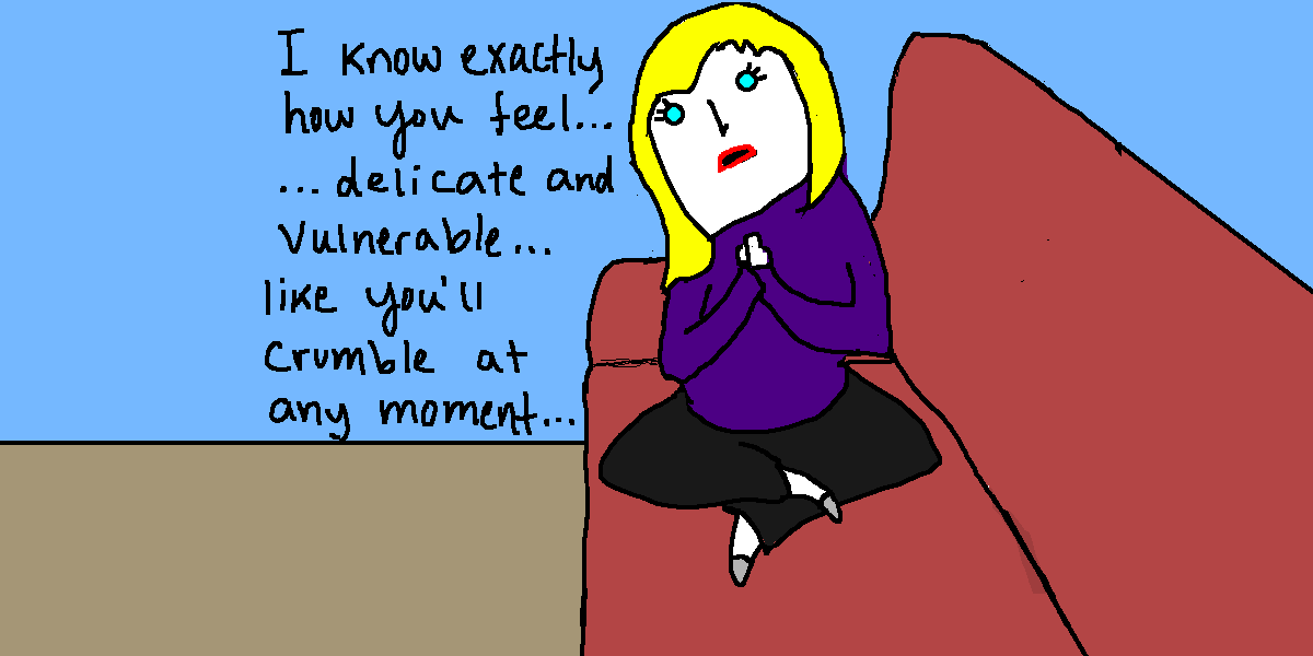 Thank you for writing this. This is a wonderful way to explain to me how I should not act around people who feel this way, and that support is not what people might expect.