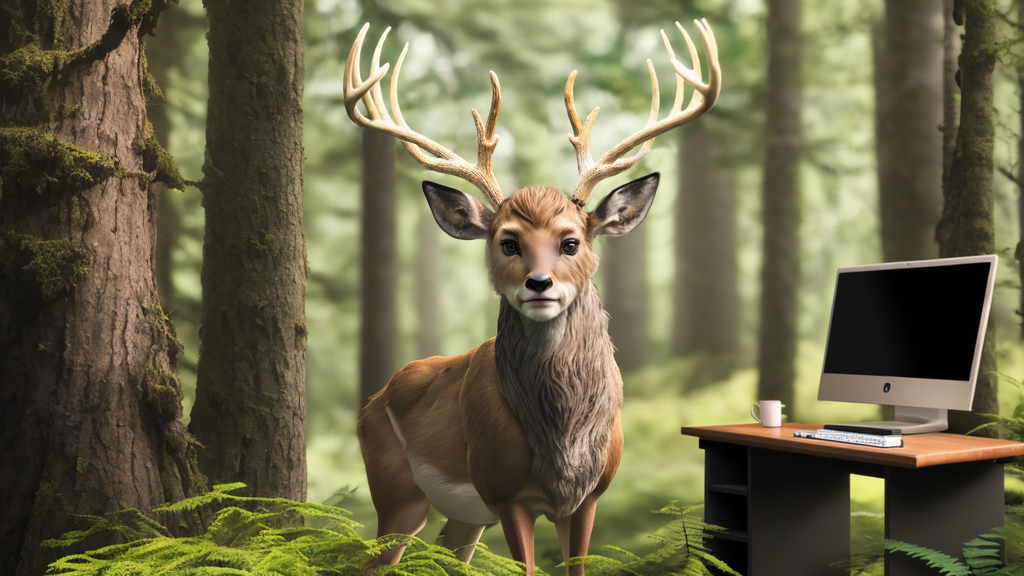 Basically a deer with a human face. Despite probably being some sort of magical nature spirit, his interests are primarily in technology and politics and science fiction.