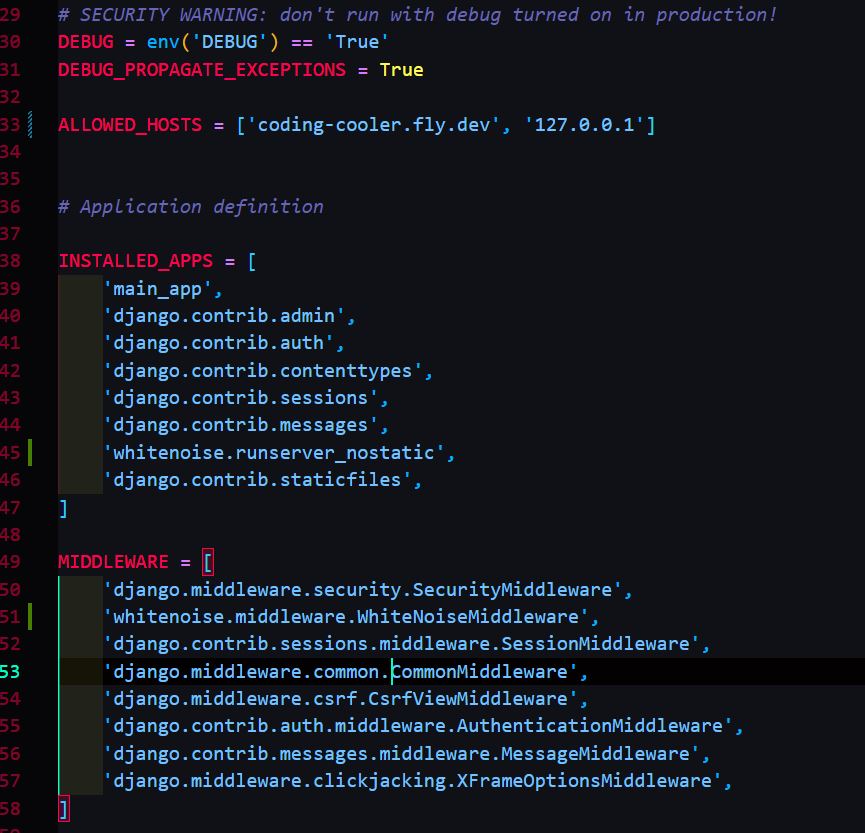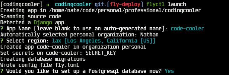 flyctl secrets set DATABASE_URL="postgres://postgres:[email protected]:5432/yourappname" - We need to make sure our settings.py has