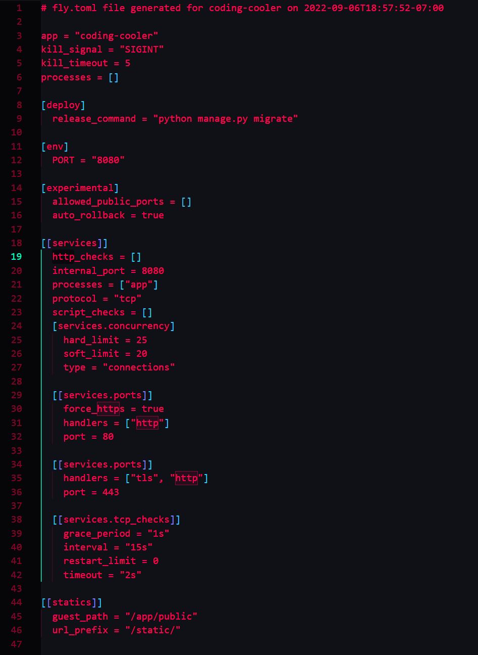 - Finally last step we need to do is check out fly.toml file and Dockerfile. In the Dockerfile you may need to change the last CMD line from: