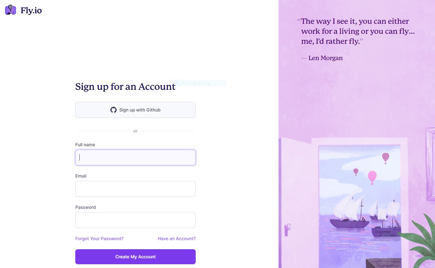 - Go to The Fly.io signup page.