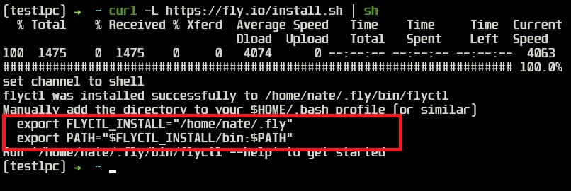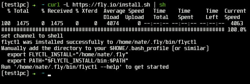 curl -L https://fly.io/install.sh | sh - A successful install looks like this: