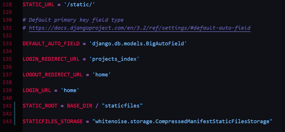 STATIC_ROOT = BASE_DIR / "staticfiles" STATICFILES_STORAGE = "whitenoise.storage.CompressedManifestStaticFilesStorage"