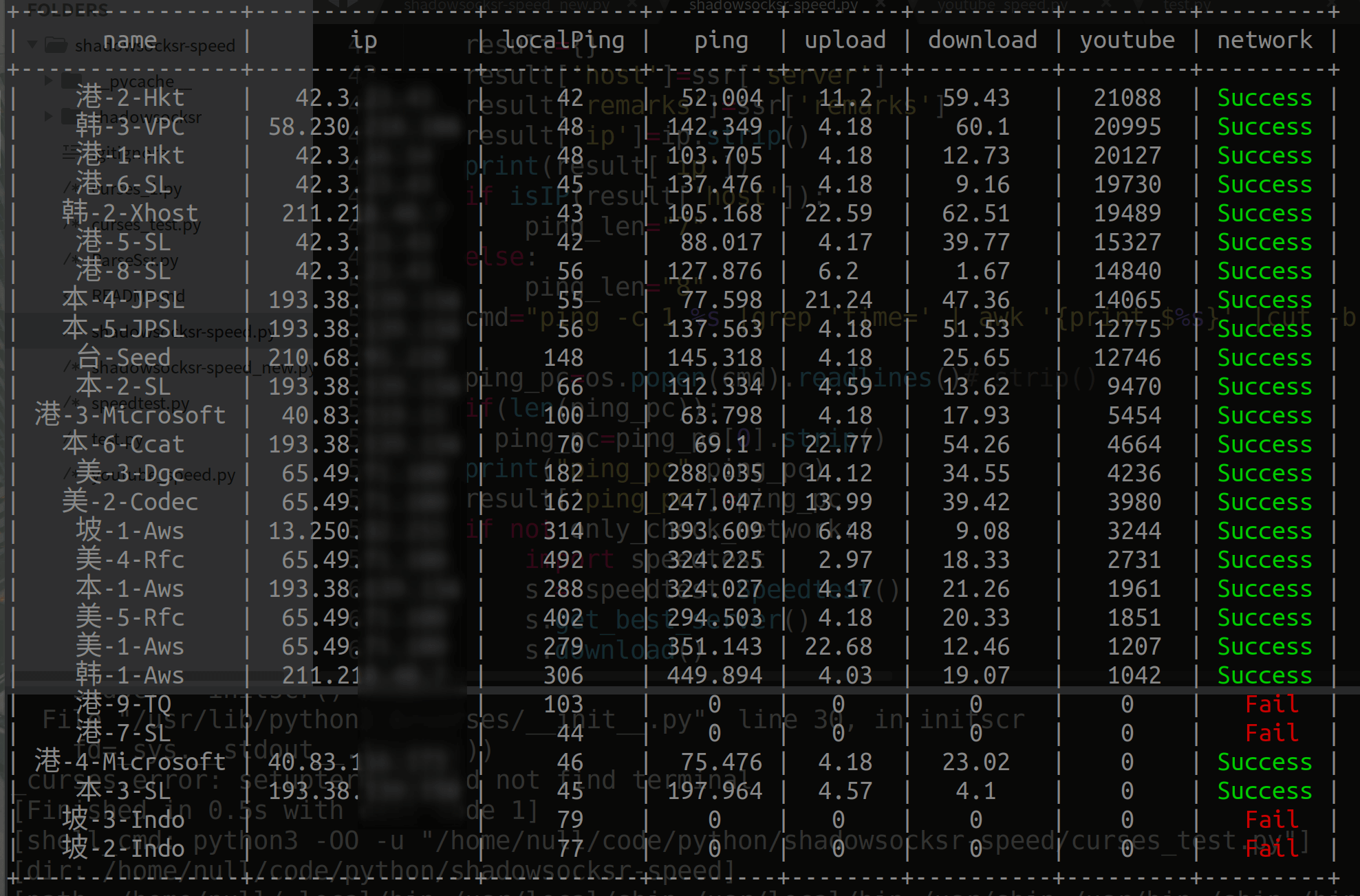 python shadowsocksr-speed_win.py