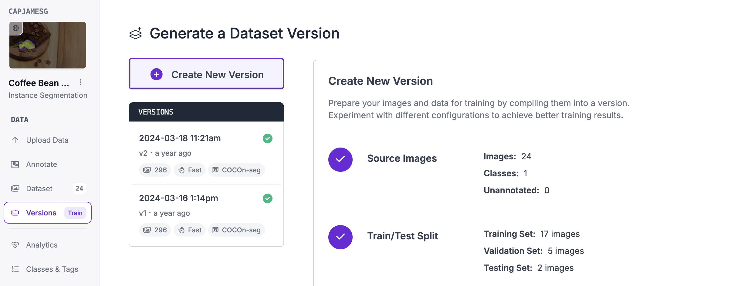 Next, click "Generate New Version" to generate a new version of your dataset: