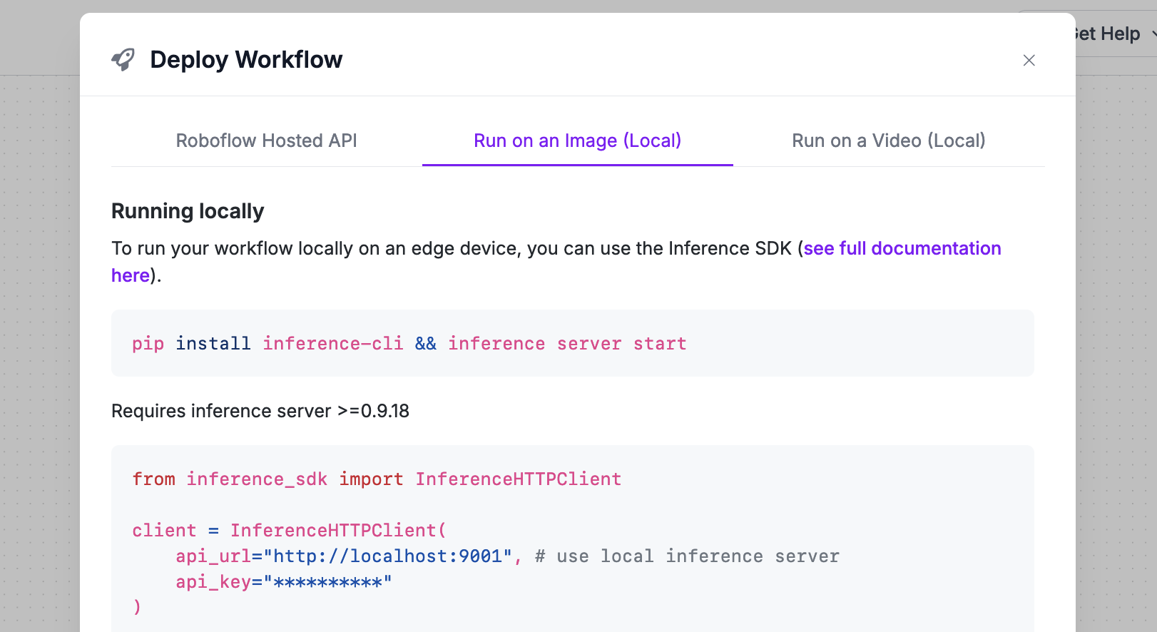 You can run Roboflow Inference in Docker, or via the Python SDK.