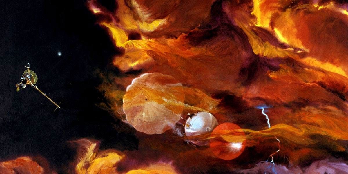 The probe’s transmitter failed 61.4 minutes after entry when the spacecraft was about 112 miles (180 kilometers) below its entry ceiling, evidently due to the enormous pressure (22.7 atmospheres).