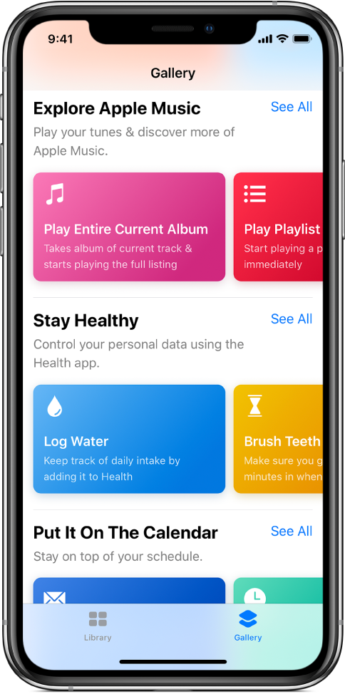 Spravovanou sbírku šikovných a užitečných zkratek najdete v Galerii. Když si projdete různé zkratky v Galerii, zjistíte, jaké vám nabízejí možnosti a jak jsou sestavené. Jakmile v Galerii najdete zkratku, která vám vyhovuje, můžete ji jednoduše klepnutím přidat do své Knihovny a později ji přizpůsobit svým potřebám.