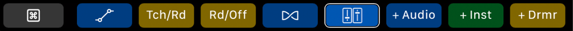 Diese Kurzbefehle werden in Logic Pro in der Konfigurationsanzeige in der Touch Bar angezeigt. Beachte bitte, dass die fünfte Taste für jeden Spurtyp anders ist.