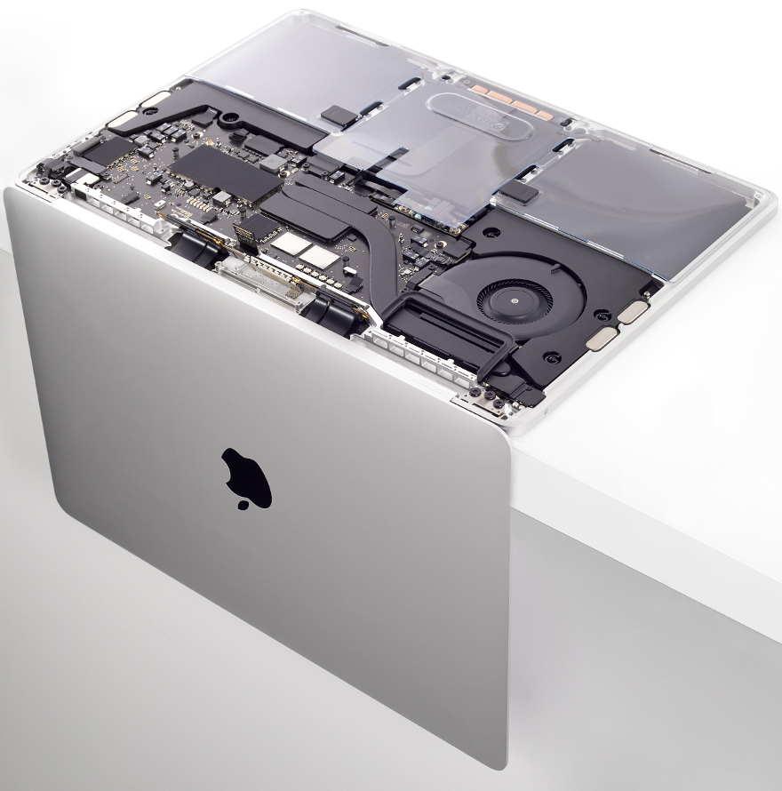 Open the computer and place it facedown on a clean surface with the display hanging down over the edge of the table.