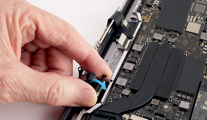 Close the display and adjust it until it’s flush with the top case.