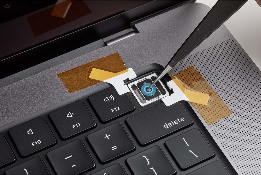 Gently press the Touch ID shim to adhere it to the top case.