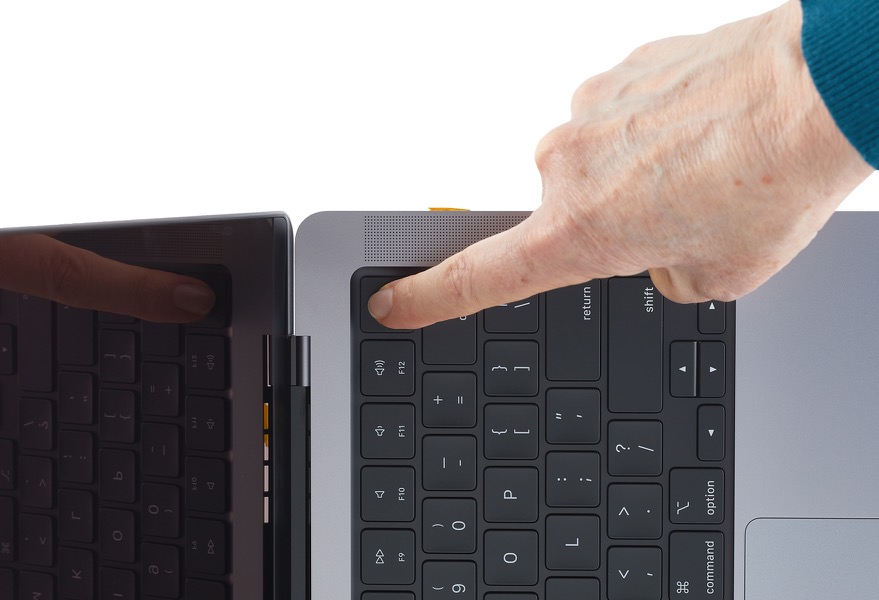 Ensure that the Touch ID button is held in place by the Y-shaped tools as you close the display. Then place the computer display-side down.