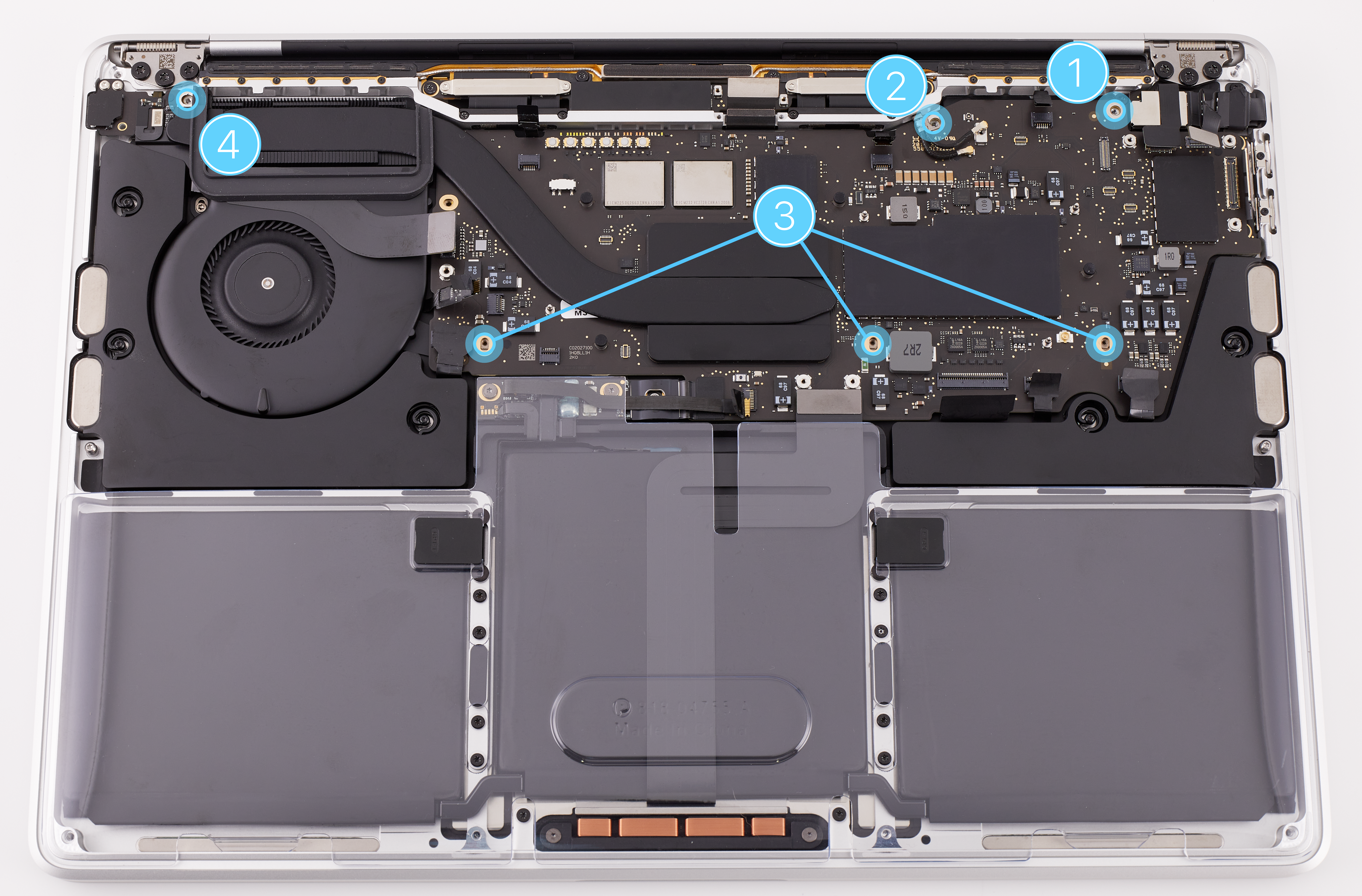 Use the T5 screwdriver to remove the following five T5 screws from the logic board: