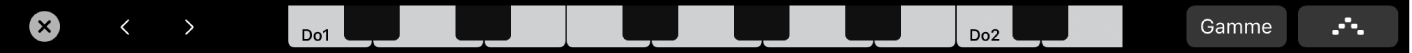Pour régler la plage d’octaves de la Touch Bar, touchez l’un des boutons d’octave du clavier à gauche sur le clavier de la Touch Bar.