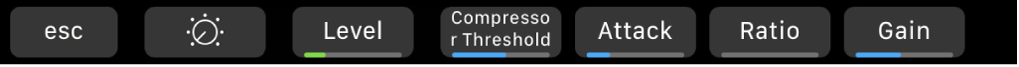 Lorsque vous touchez le bouton Audio sur l’écran de configuration, la Touch Bar affiche les commandes suivantes :
