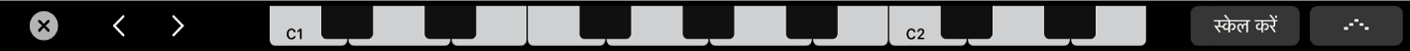 स्वरों को किसी संगीतमय स्केल तक सीमित करने के लिए : स्केल बटन पर टैप करें, फिर रूट नोट तथा मोड को चुनने के लिए टैप करें।