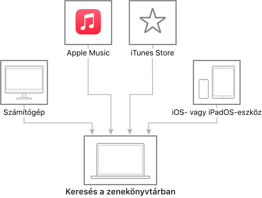 Ha nem fizet elő az Apple Musicra, és szeretné hozzáadni kedvenc dalait vagy albumait, az iTunes Store-ból vásárolhat és tölt le zenéket. És az iTunes Store-ban korábban vásárolt elemek legtöbbjét letöltheti jogosult számítógépeire és eszközeire (legfeljebb 10-re).
