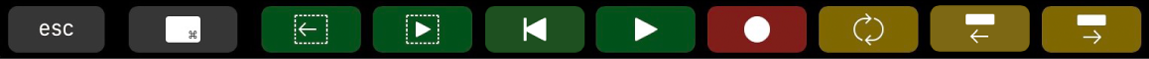 Le seguenti abbreviazioni da tastiera vengono visualizzate nella Touch Bar nella schermata di configurazione. Nota che il quinto pulsante cambia a seconda del tipo di traccia.