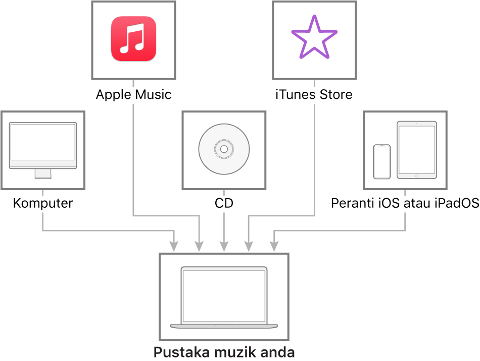 Jika anda tidak melanggan Apple Music dan anda mahu menambah lagu atau album kegemaran, anda boleh membeli dan memuat turun muzik daripada iTunes Store. Jika anda telah membeli item daripada iTunes Store sebelum ini, anda boleh memuat turun item ke komputer dan peranti dibenarkan anda (sehingga 10 keseluruhan).